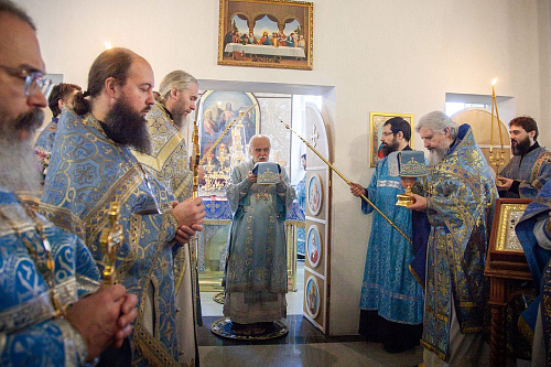 Рано утром перед Божественной Литургией был совершён праздничный водосвятный молебен.