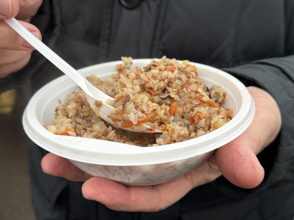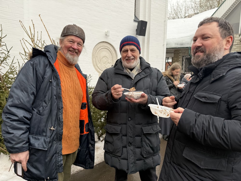 По окончании всех торжеств прихожане и гости были приглашены на праздничную трапезу - приготовленную на полевой кухне гречневую кашу с грибами и традиционный вкусный чай со сладостями.