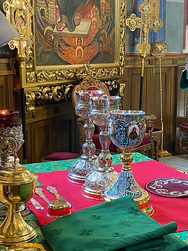 За Литургией читался евангельский отрывок о десяти девах, пять из которых, будучи благоразумными, были готовы встретить Жениха с горящими светильниками, чтобы войти с Ним на брачный пир (Мф.25:1–13). Это притча о готовности человека встретить Христа.