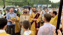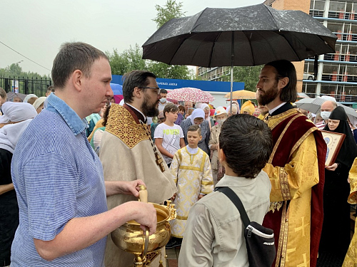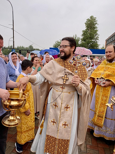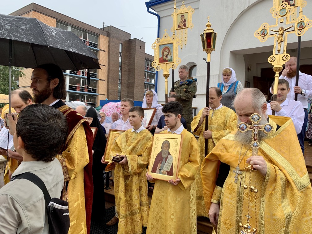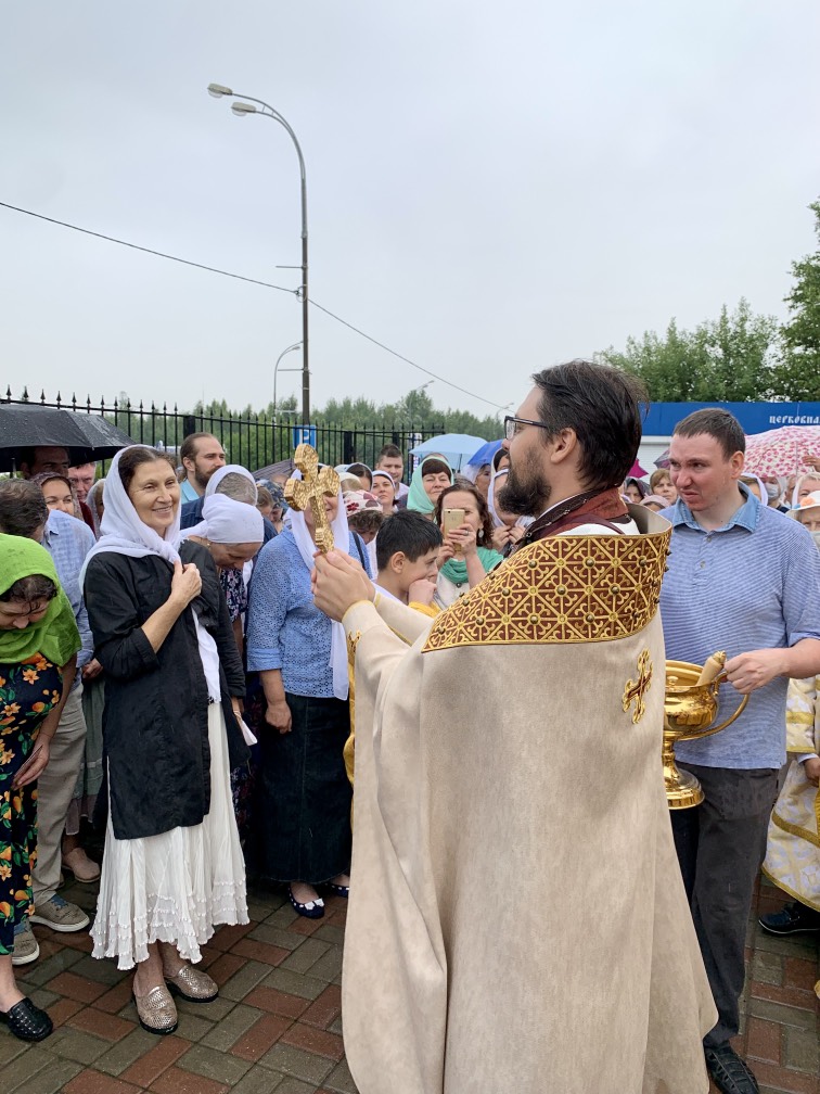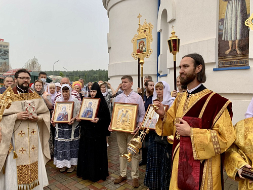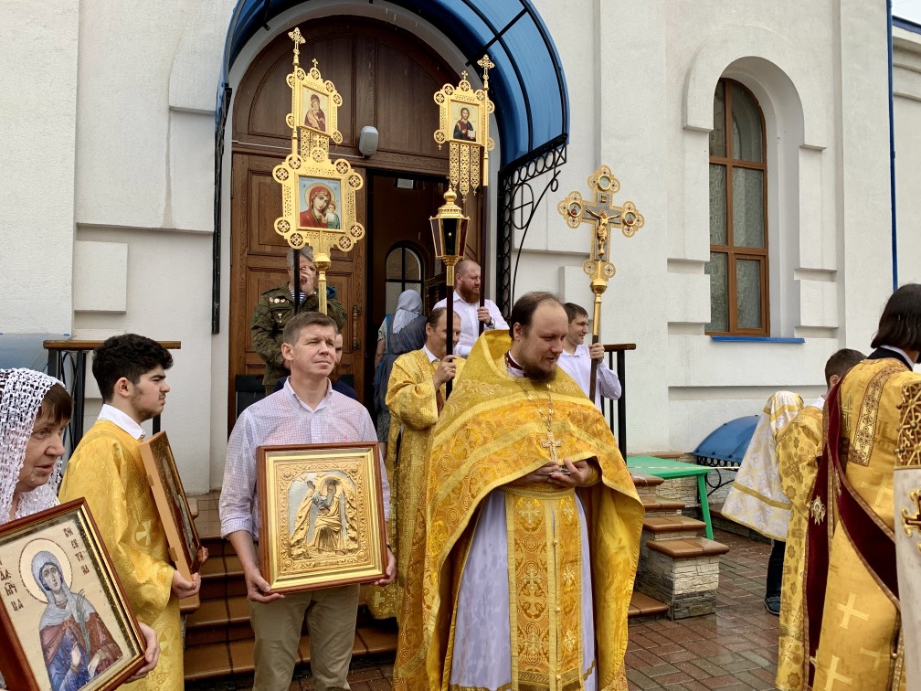 По окончании Божественной Литургии, под праздничный перезвон колоколов, был совершен крестный ход вокруг храма.
