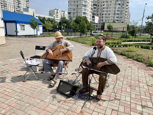 Во время трапезы во дворе храма состоялся праздничный концерт дуэта Сергиево-Посадских гусляров под руководством Тюнякина Романа.