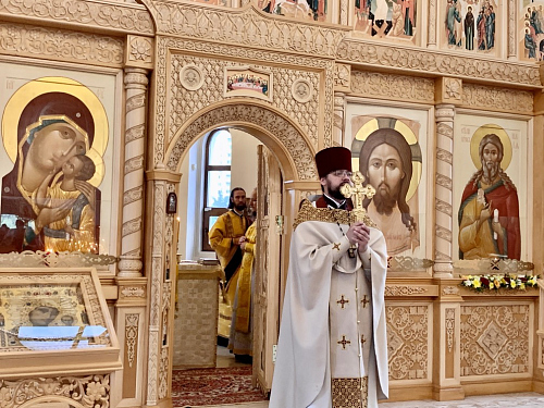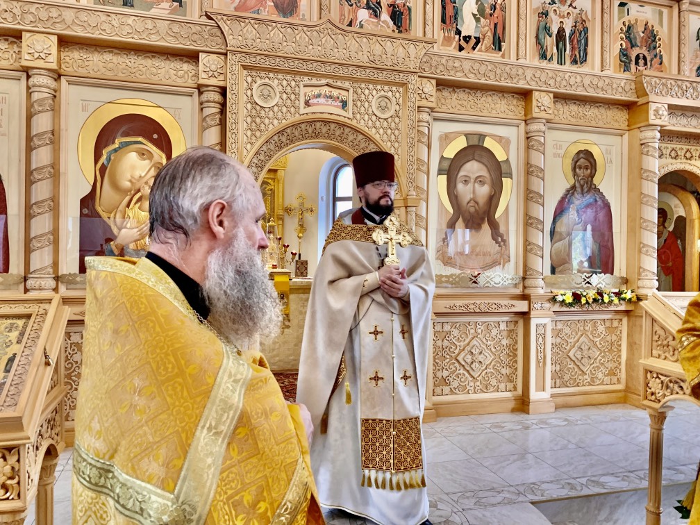 Праздничную Божественную Литургию совершил настоятель храма иерей Илия Власов в сослужении иерея Андрея Тарасова, благочинного Шаховского округа Одинцовской епархии Московской митрополии, а так же протодиакона Иоанна Дикого, клирика Троице-Сергиевой Лавры.