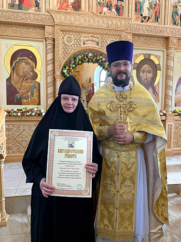 После Крестного хода настоятелем храма иереем Илией Власовым были вручены памятные грамоты и произнесены слова благодарности всем, кто принимал активное участие в приходской жизни, строительстве, благоукрашении храма, а так же в подготовке храма к предстоящему Великому освящению.