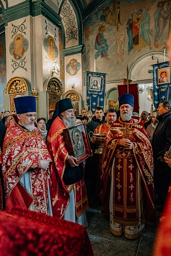 В завершение богослужения были совершены Крестный ход и славление Святой Великомученице Параскеве Пятнице, после чего настоятель обратился к духовенству и прихожанам с приветственным словом и произнес проповедь. Архимандрит Мелхиседек (Артюхин), от лица духовенства Параскево-Пятницкого благочиния, поздравил протоиерея Анатолия Кожу и всех молящихся с днем небесной покровительницы.