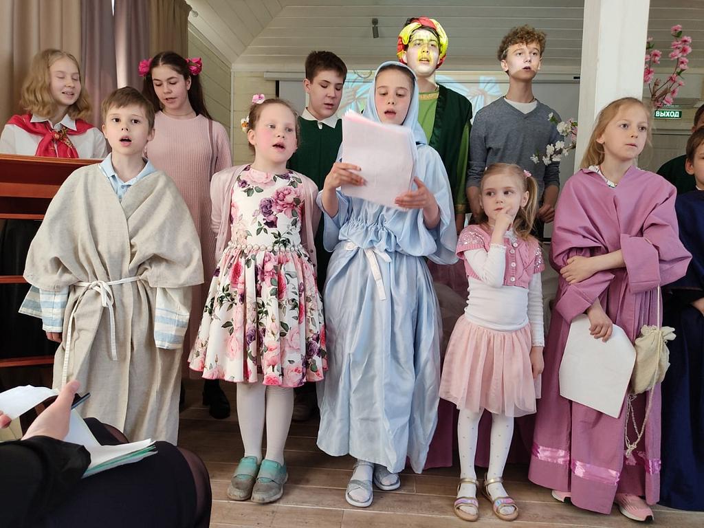 Отдельно хочется выделить выступление самых младших воспитанников школы – Ваня с сестрой Асей Лисовые прочли стихотворение Константина Феофанова "На Пасху", а их мама – Ксения Лисовая – стихотворение Якова Полонского "Пасхальные вести".