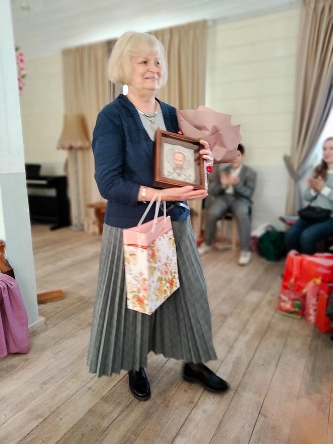 Директор школы со сцены поздравил от имени всех ребят и педагогического состава юбиляра Жданову Светлану Алексеевну, педагога по предмету «Закон Божий». Столько тепла, мудрости, знаний и заботы дарит она воспитанникам!