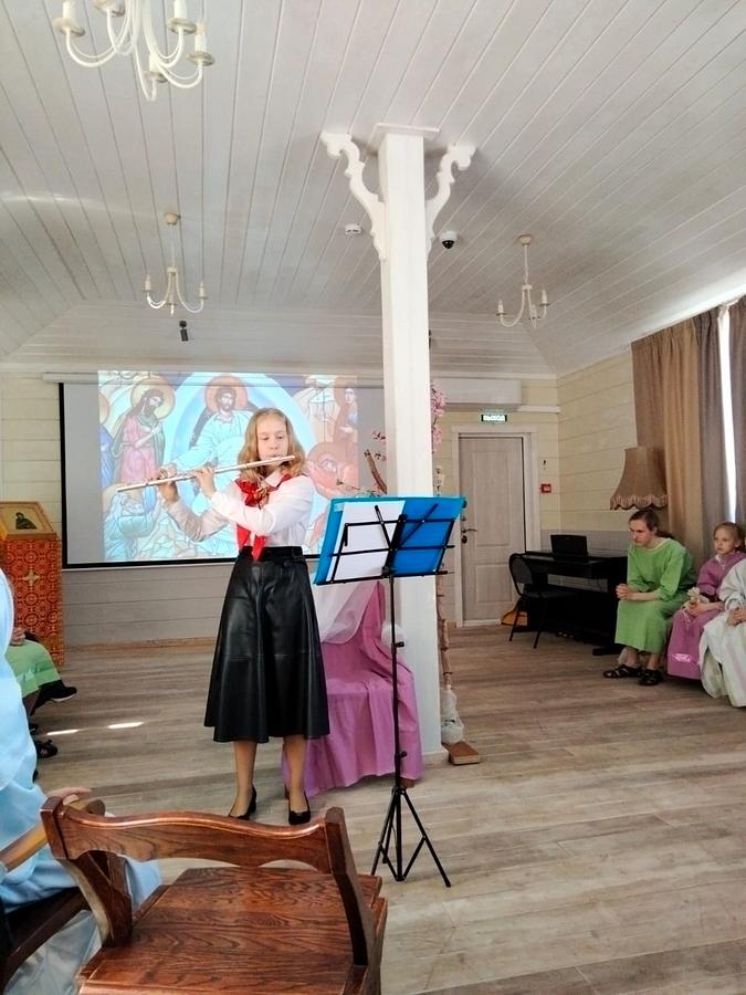 В программе концерта звучала флейта Риты Гусевой, за фортепиано выступил Волков Михаил, порадовали всех задорные балалайки Дмитрия Волкова и Владимира Михайлова. Маша Боковаисполнила на фортепиано композицию, выступив аккомпаниатором к творческому номеру Виталия Пономарева, который прочел стихотворение Великого князя Константина Романова «Тебе, воскресшему, благодаренье!».