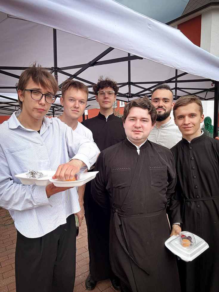 На территории храмового комплекса по окончании Богослужения для прихожан было организовано угощение, а также состоялся праздничный концерт, подготовленный к дню Святой Троицы молодежным активом храма.