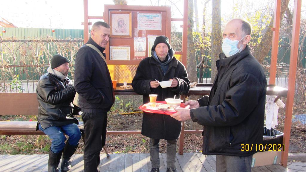 В октябре 2021 года социальной службой храма Священномученика Серафима, митрополита Петроградского в Южном Бутове, по благословению настоятеля храма иерея Максима Глухих, была оказана помощь бездомным людям, нуждающимся в горячей еде.