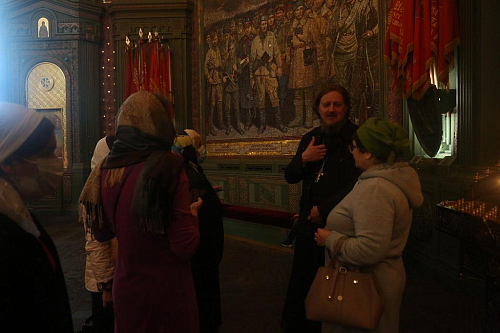 Верующие посетили верхний (во имя Воскресения Христова) и нижний (освящен в честь Святого Равноапостольного Великого князя Владимира) храмы, а так же музейный комплекс «Дорога памяти», где представлен каждый день войны.