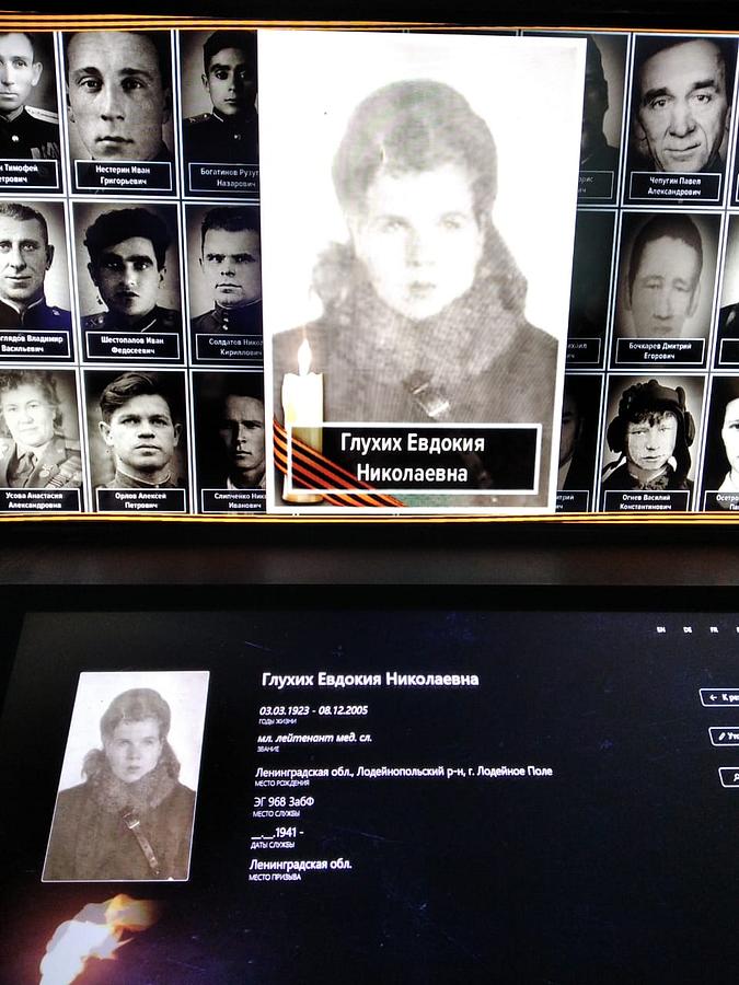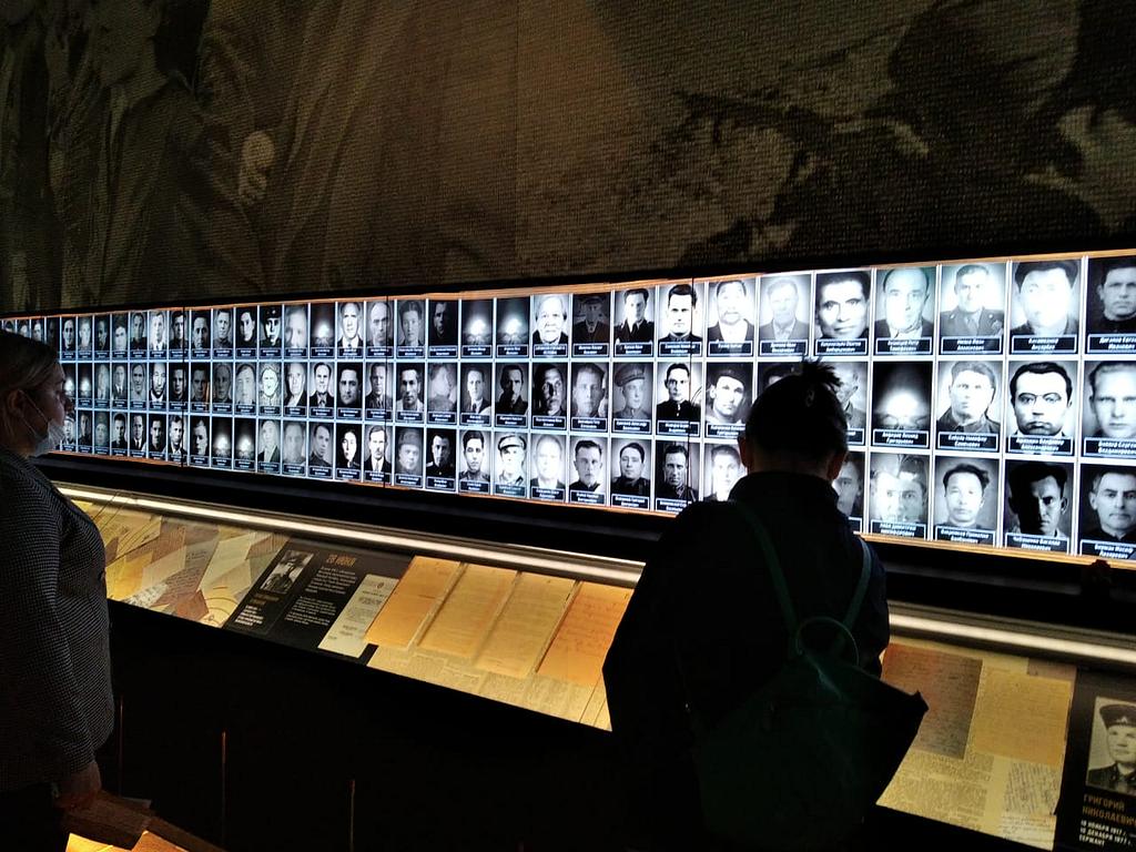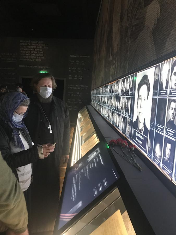 Паломники и учащиеся Воскресной школы оказались на месте самых крупных сражений, устроенных в виде видео и 3D инсталляции. Можно было почитать архивные документы, посмотреть фронтовые фотографии, посмотреть и потрогать форму и оружие тех лет, увидеть фотографии всех, кто воевал за нас и нашу жизнь, найти своих родных и близких в этом бесконечном списке имен и фотографий.