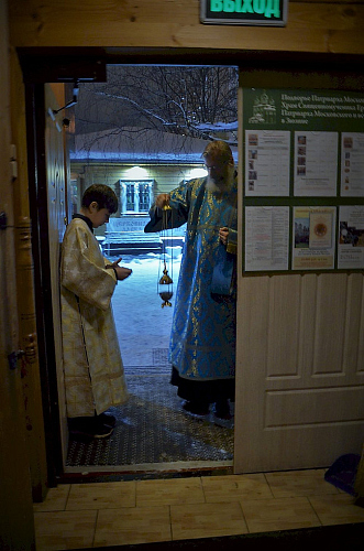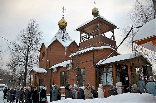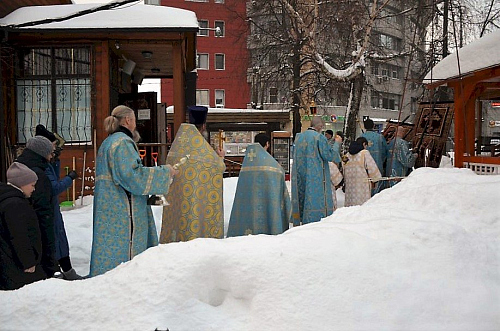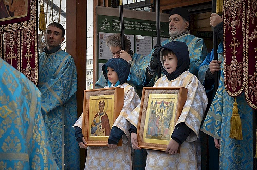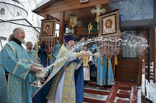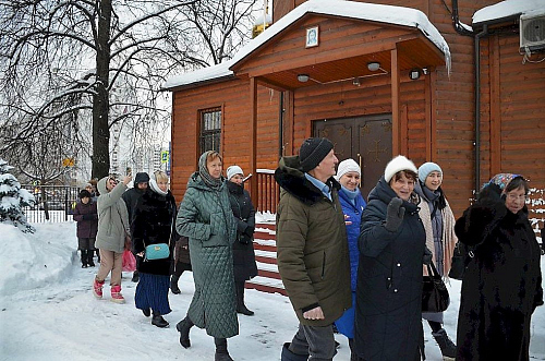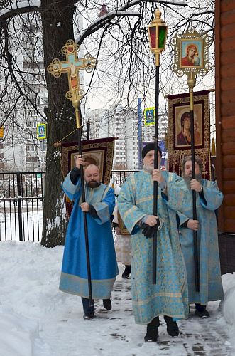 По окончании Божественной Литургии совершен Крестный Ход, во время которого прихожан окропили Святой водой. В завершение праздничных торжеств иерей Иоанн поздравил всех прихожан со знаменательным для храма событием и обратился к собравшимся с проповедью. Освящение храма - это его день рождения, день, когда начинает биться сердце дома Божьего и совершается первая на этом Святом месте Божественная Литургия. Настоятель отметил, что приход вырос и скоро, после освящения основного храма в честь Патриарха Ермогена, литургии будут совершаться уже в трех храмах. Также иерей Иоанн поблагодарил всех жертвователей, внесших свой вклад в дело строительства и благоукрашения храма и пожелал всем духовного роста и следования по пути спасения во славу Божию.