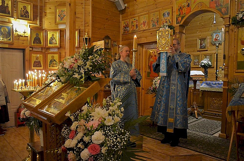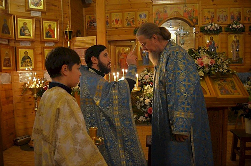 Праздничные богослужения - Всенощное бдение и Божественную Литургию совершил настоятель храма иерей Иоанн Омелянчук в сослужении иерея Илии Кадерова и диакона Андрея Кириченко.