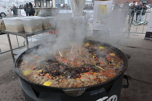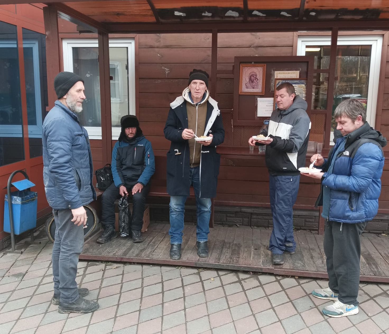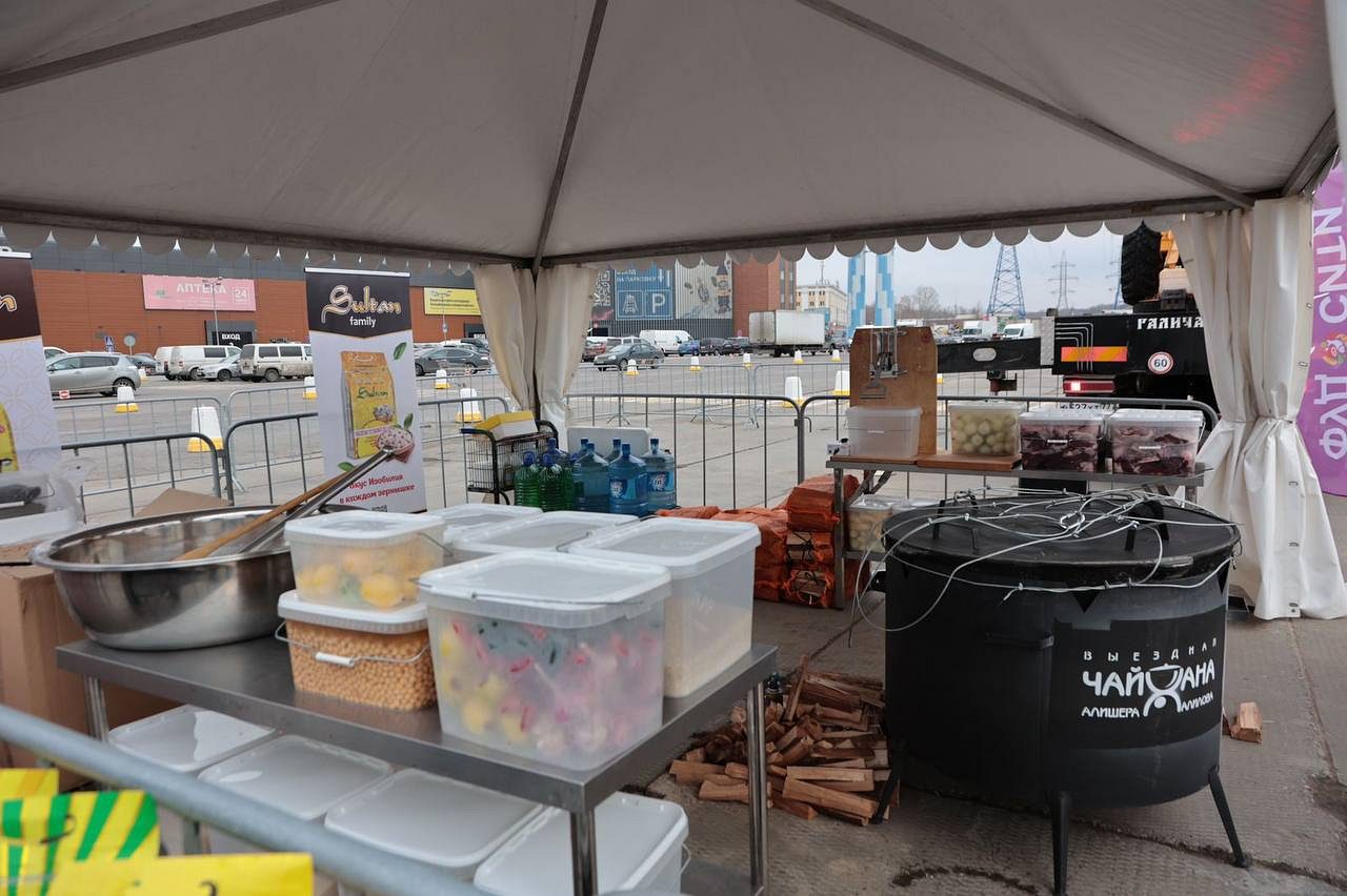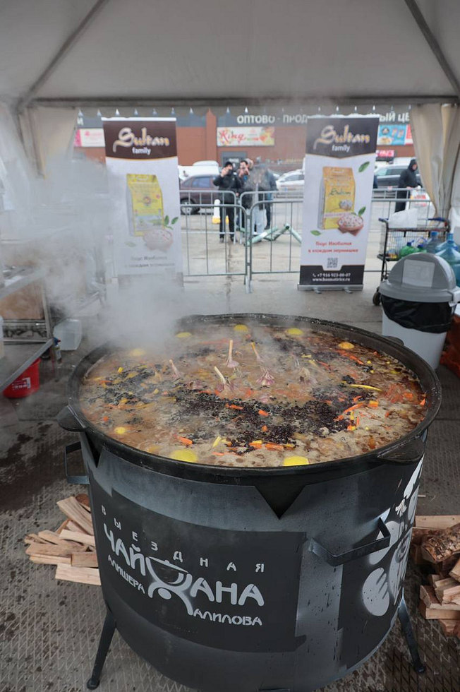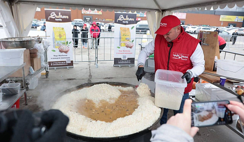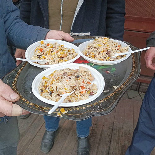 Половина этого казана стала угощением для всех гостей праздника, а другая часть была пожертвована организаторами на благотворительное питание неимущих. Волонтеры приходских социальных служб раздали нуждающимся и бездомным людям больше 100 кг горячей и сытной пищи.