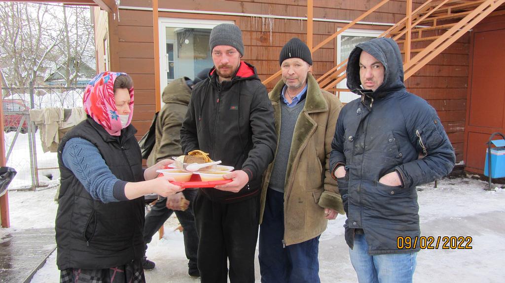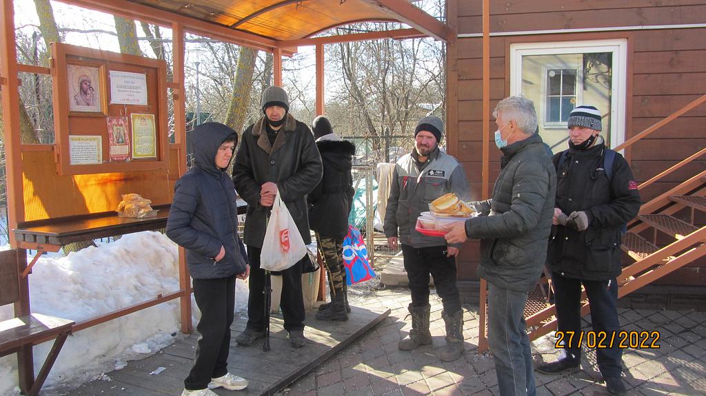В день удается накормить 10-15 человек. Еда раздается за территорией храма в одноразовой посуде с соблюдением всех санитарных норм и дезинфекции. При этом с бездомными волонтеры проводят беседы о Православной вере, пред трапезой совершают молитвы, соблюдая санитарные нормы и социальную дистанцию.