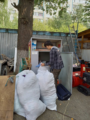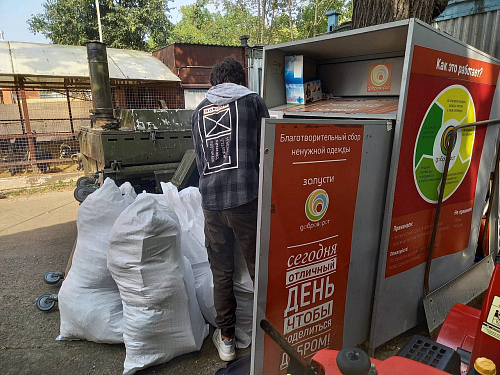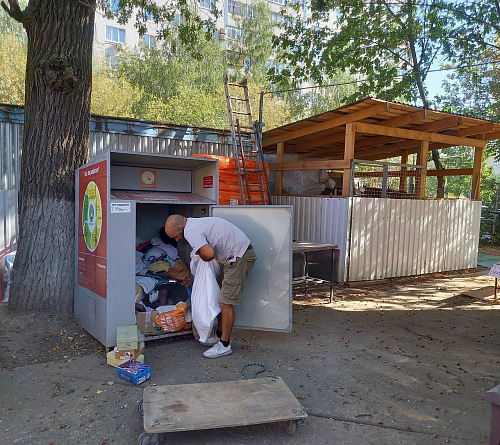 В течение месяца отгружались вещи из установленного на территории храма бокса-контейнера для сбора одежды, в рамках акции «Доброворот». Контейнер регулярно пополняется вещами, которые приносят жители района и прихожане храма.