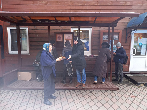 Волонтеры, представители приходского молодежного объединения храма готовят и ежедневно раздают горячие обеды для бездомных. Продукты жертвуют прихожане. В день удается накормить 15-30 человек. Во время благотворительных обедов бездомным раздается материал о Православной вере, о спасении, о том, как начать новую жизнь во Христе.