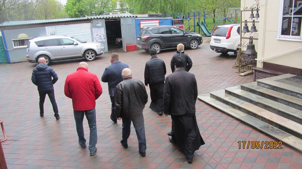 17 мая 2022 года на территории храма прошла встреча настоятеля храма, иерея Максима Глухих, иерея Сергия Онга, клирика храма, референта управляющего Юго-Западного викариатства по строительству храмов, с представителями генподрядчика, представителями"Единой службы заказчика" Московской Патриархии и с главным архитектором проекта Римшей Д.А.