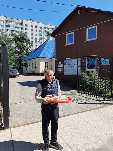 Также по благословению настоятеля, в условиях пандемии оказывается помощь бездомным людям, нуждающимся в горячей еде. Волонтеры храма ежедневно раздают горячие обеды для бездомных. В день удается накормить 10-18 человек. Еда раздается за территорией храма в одноразовой посуде с соблюдением всех санитарных норм и дезинфекции.