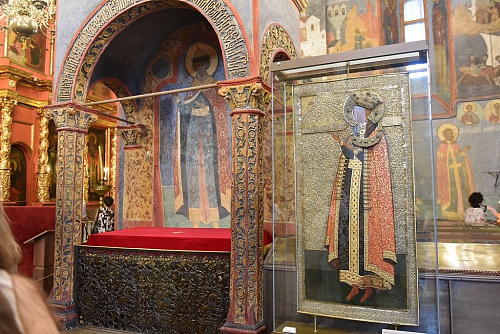 В продолжение экскурсии прихожане посетили архитектурный ансамбль Соборной площади — один из самых величественных в Европе. Каждый из расположенных здесь храмов играл свою неповторимую роль в жизни древнего Кремля. Величественный Успенский собор - место, где проходили торжественные церковные службы и совершались коронации. Архангельский собор со своей аристократической статью - усыпальница князей и царей. Уютные, стройные здания домовых церквей для уединенной молитвы царя и митрополита: Благовещенский собор и церковь Ризоположения.