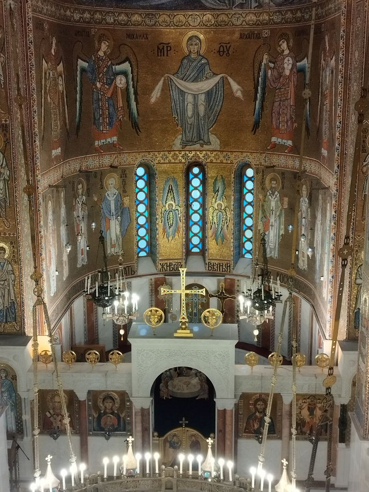 Гости увидели великолепные мозаики, фрески и образы, выполненные в византийском стиле, познакомились с историей создания храма.