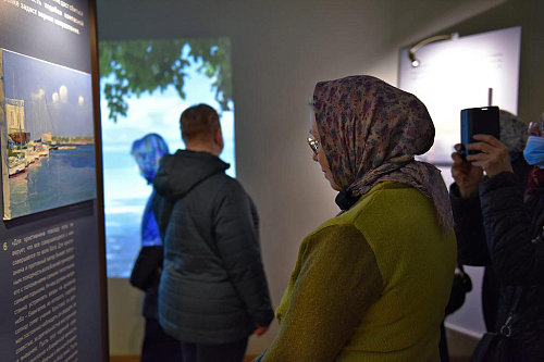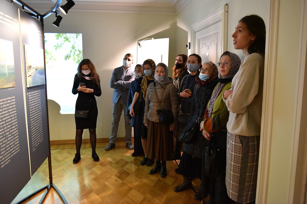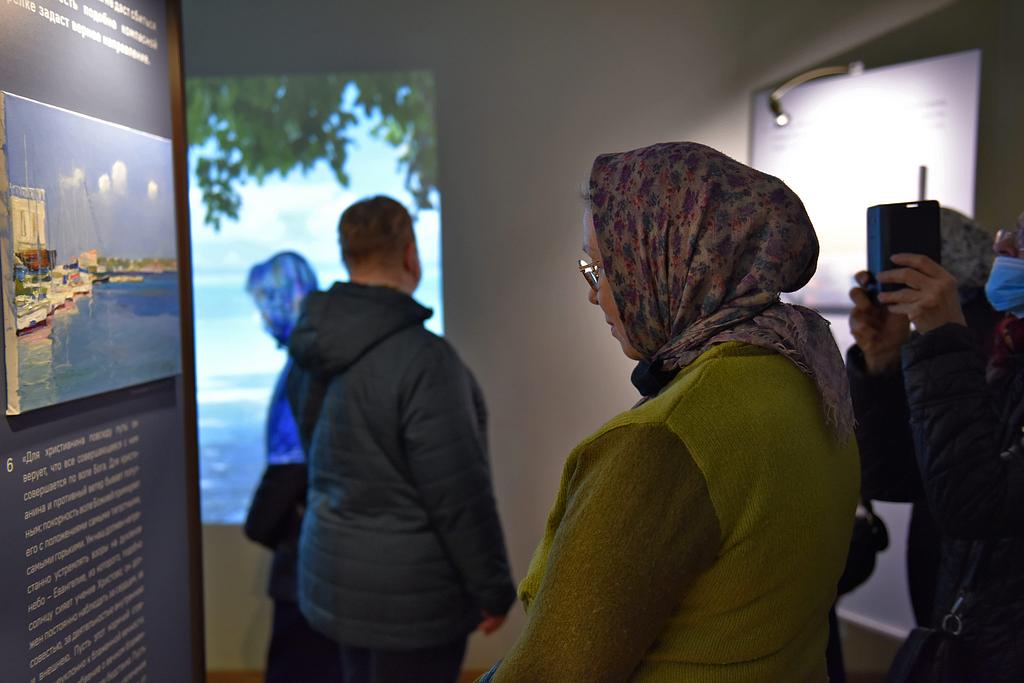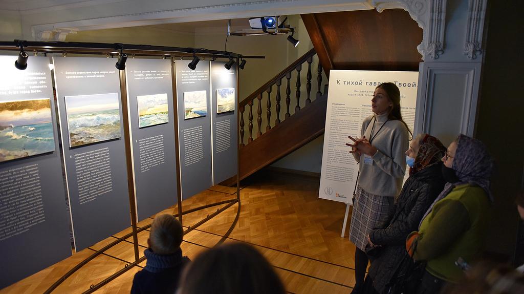 По окончании обзорной экскурсии по Обители экскурсанты направились в настоятельский корпус, где они попали на необычную выставку «К тихой гавани Твоей». Здесь высказывания святого Игнатия Брянчанинова обрели визуальную форму в виде морских пейзажей художника Татьяны Годовальниковой. Святитель Игнатий сравнивает христианскую жизнь с путешествием по морю, полным опасностей. И здесь же раскрывает тайну их преодоления, чтобы достичь Небесного Царствия. Организаторы использовали свет, звуки воды, визуальное сопровождение, чтобы каждый посетитель стал полноценным участником настоящего действа со своим началом, развитием и кульминацией.