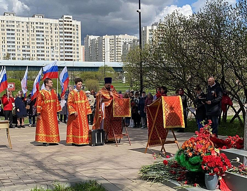 По традиции настоятель храма протоиерей Николай отслужил благодарственный молебен, а затем обратился к присутствующим с напутственным словом, поздравив всех с праздником Великой Победы.Также с поздравлениями выступили представители Управы района Южное Бутово и депутаты.