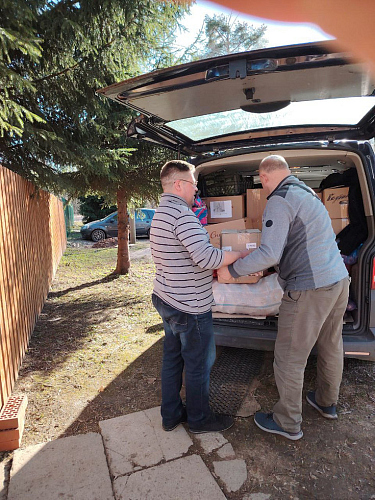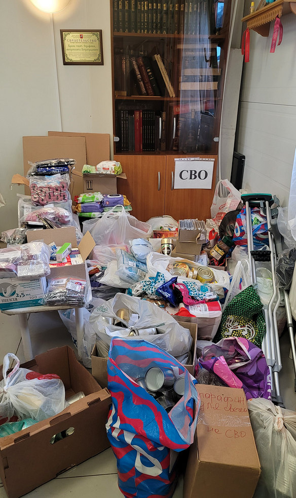 16 апреля 2025 года по благословению настоятеля строящегося храма священномученика Серафима, митрополита Петроградского иерея Максима Глухих была собрана и передана гуманитарная помощь участникам СВО.