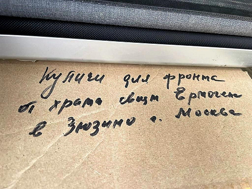 25 апреля 2023 года доставлен на позиции в зоне СВО гуманитарный груз - куличи и другие гостинцы и подарки, собранные прихожанами храма священномученика Ермогена, Патриарха Московского и всея Руси, чудотворца, в Зюзине, отправленные для воинов к Светлому Празднику Пасхи.