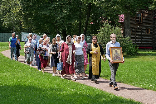 В небольшом деревянном храме, построенном в память святых Новомучеников и Исповедников Российских, был совершён молебен священномученику Василию.