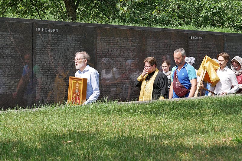 После молебна все пошли к Поклонному кресту, где была отслужена лития по всем невинно убиенным на полигоне.