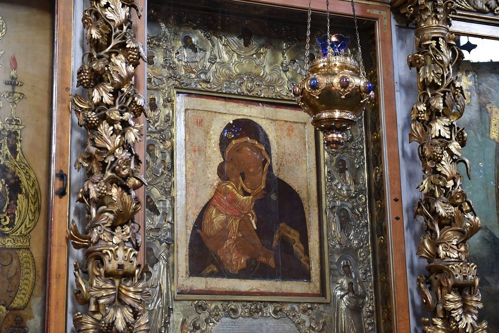 Среди главных святынь Малого собора – чтимые иконы Божией Матери «Феодоровская» и «Знамение», с ними соседствует список Донского образа Пресвятой Богородицы, украшенный особой сенью.