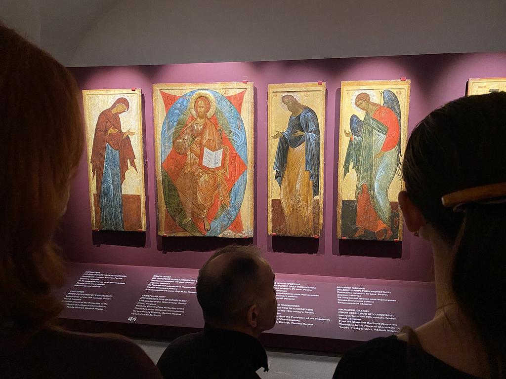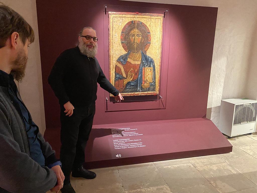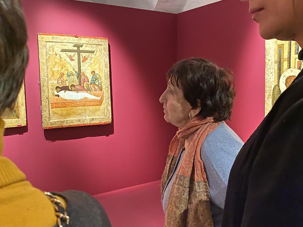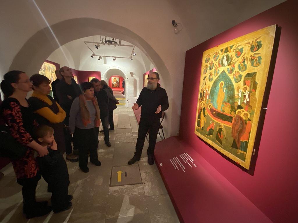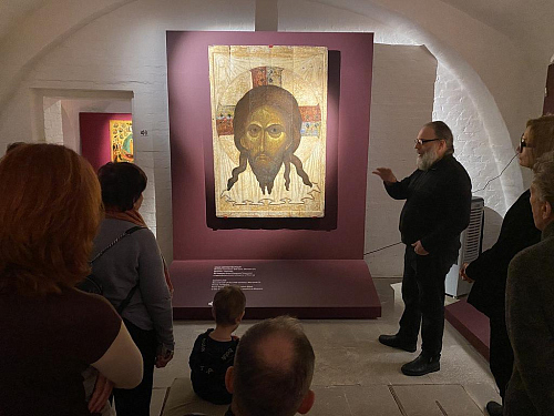 В первом зале гости увидели ценнейшие памятники музейного собрания, жемчужину коллекции - образ «Господа Вседержителя» первой половины XIII столетия и уникальный крупноформатный образ «Спаса Нерукотворного» второй половины XIV века.