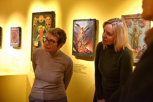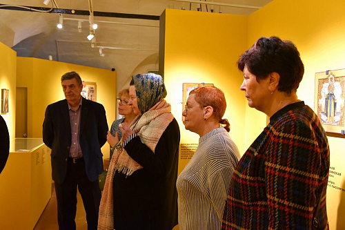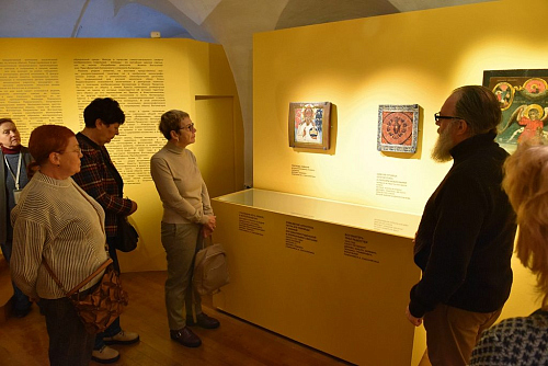 Старший научный сотрудник отдела научно-просветительной работы Музея диакон Дмитрий Николаевич Клыков познакомил паломников с редкими изводами икон Святой Троицы, Господа Иисуса Христа, Пресвятой Богородицы, необычными образами широко почитаемых и малоизвестных святых. В продолжение экспозиции гости увидели иконы, содержащие гимнографические и дидактические сюжеты, иллюстрации евангельских притч и событий библейской истории, иконы редких сюжетов и произведения, отличающиеся неожиданными вариантами традиционных изображений или уникальными и непривычными деталями их композиций.