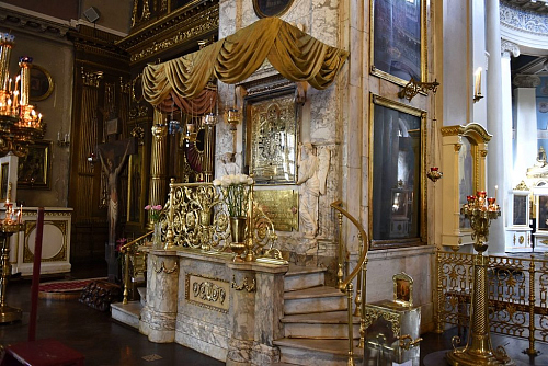 Затем паломники посетили храм иконы Божией Матери "Всех скорбящих Радость" на Большой Ордынке. Первые упоминания о храме прп. Варлаама Хутынского «в Ордынцах» относятся к 70-м гг. XVI в. В XIV в. здесь находилась дорога, ведущая в Золотую Орду. Кроме того, «ордынцами» называли русских пленников, выкупленных у монгольских завоевателей. Существует предположение, что местность, где стоит храм, была отдана им для постройки домов. В 1683-1685 гг. на месте деревянного был выстроен каменный храм Спаса Преображения. В 1688 г. состоялось прославление хранившейся в нем иконы Божией Матери «Всех скорбящих Радость», особо чтившейся особами царствующего дома.