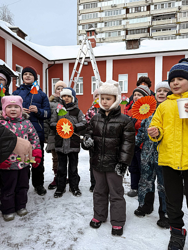 Затем учащиеся Воскресной школы исполнили песню «Блины». Также они подарили всем пришедшим на праздник прихожанам памятные сувениры – поделки «Маслены» и «Солнышки».