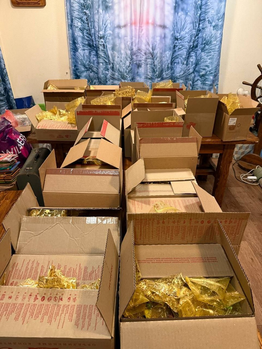 24 декабря 2025 года прихожане храма Священномученика Ермогена, Патриарха Московского и всея Руси, чудотворца в Зюзине совместно с прихожанами храма святой мученицы Татианы при МГУ им. М.В.Ломоносова в преддверии Нового года и Рождества Христова подготовили и упаковали 544 подарка (конфеты, мандарины, мед) на фронт.