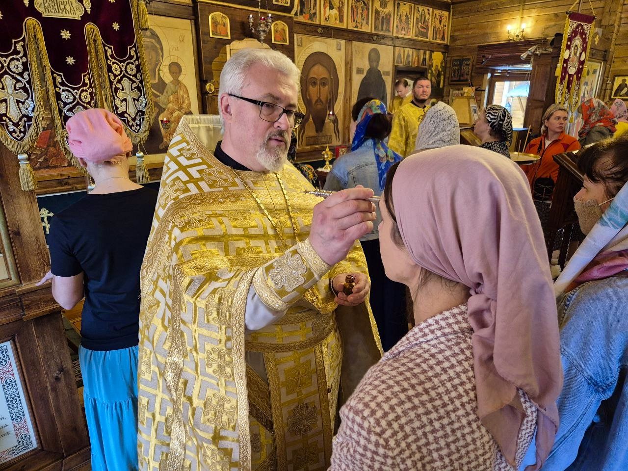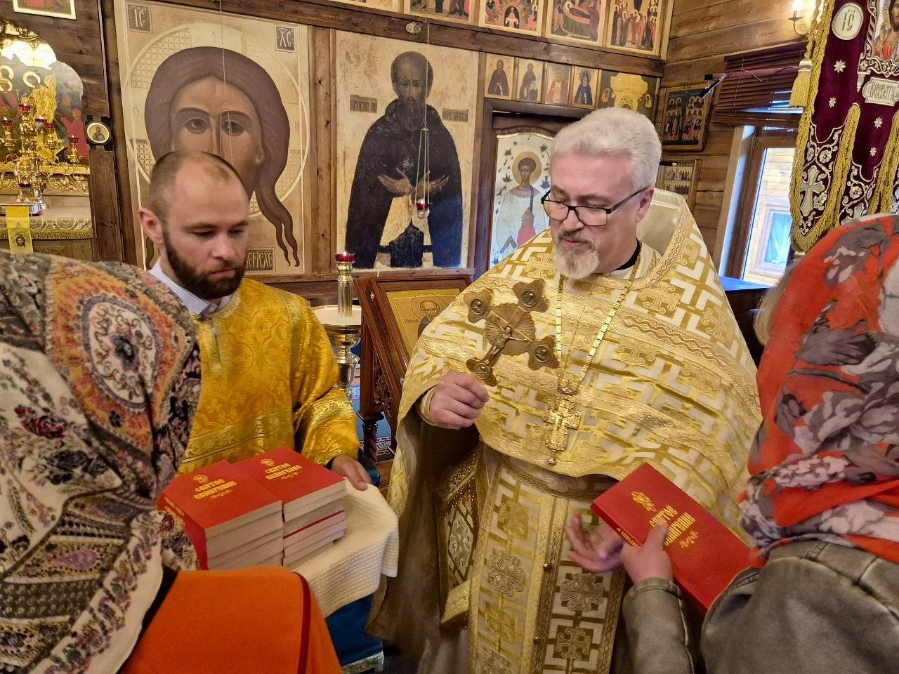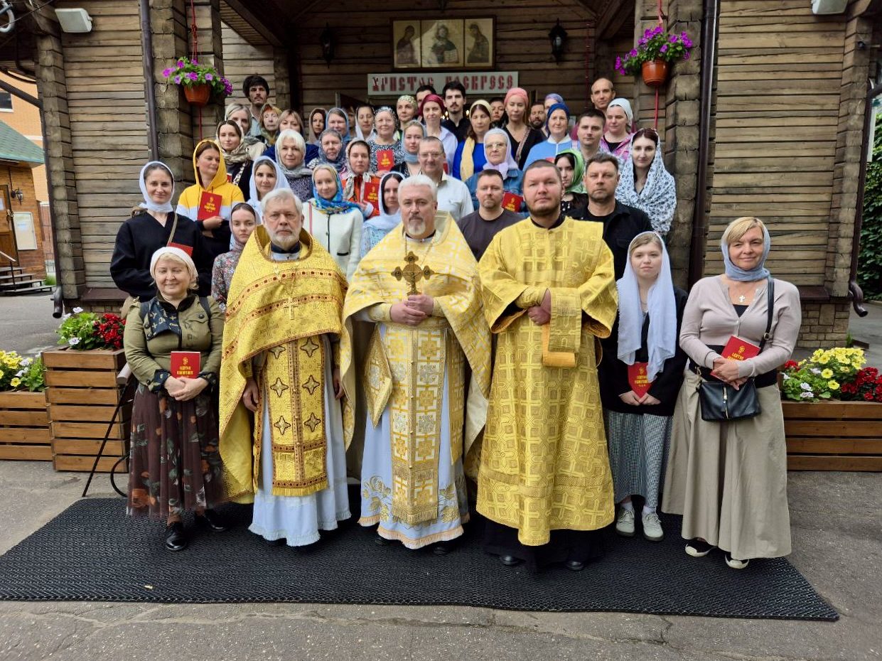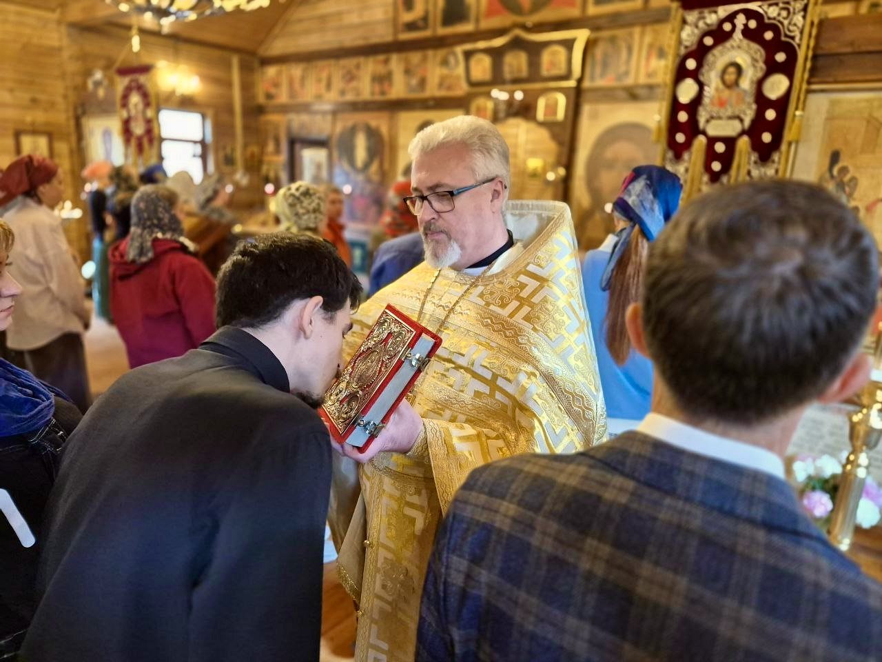 Ему сослужили священник Евгений Тремаскин и диакон Александр Карпов. После окончания Чина протоиерей Роман Марков сказал напутственные слова всем новоприсоединенным, пожелал им быть верными чадами Русской Православной Церкви и вручил в подарок книгу Святое Евангелие. Имена всех присоединенных были помянуты на Проскомидии и на Великом Входе во время Божественной Литургии.