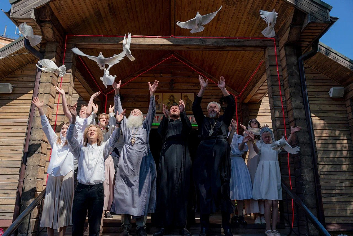 После поздравления и напутственных слов отца настоятеля, прощаясь с Воскресной школой выпускники вместе с настоятелем протоиереем Романом Марковым, клириком храма протоиереем Александром Троицким и диаконом Александром Карповым выпустили в небо белых голубей.
