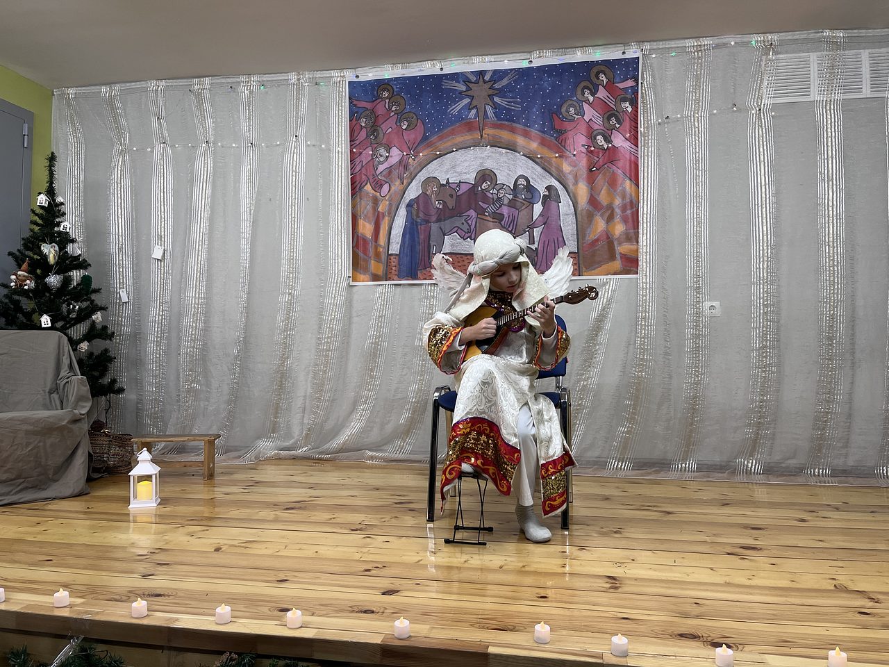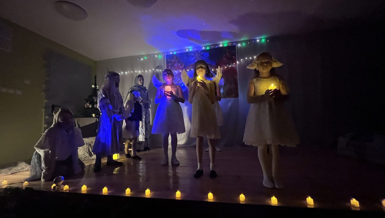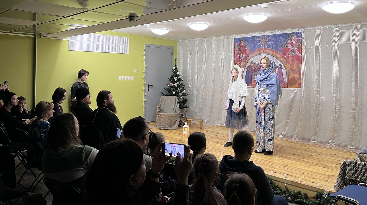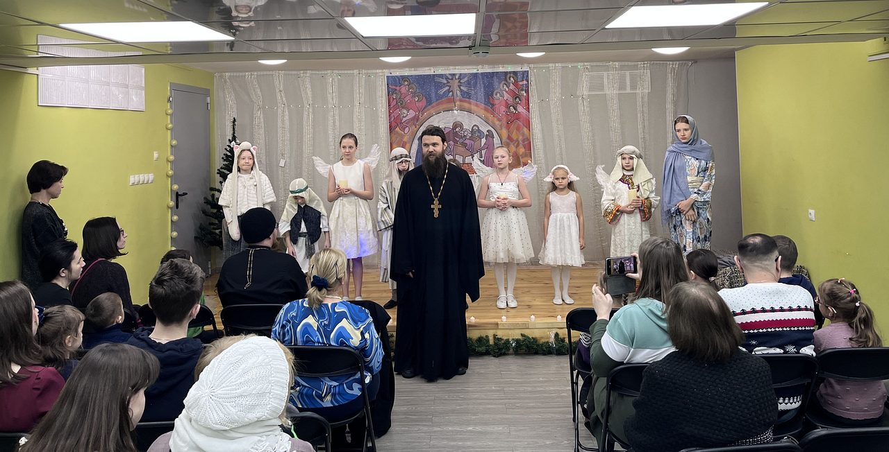 Темой спектакля стало Рождение Христа. В сценарий были включены детские песни и колядки. Во второй части концерта маленькие ангелы с радостью принесли в дар Господу все свои таланты, рассказав красивые Рождественские стихи и исполнив музыкальные этюды. На праздник были приглашены педагоги Воскресной школы, прихожане храма и посетители библиотеки.