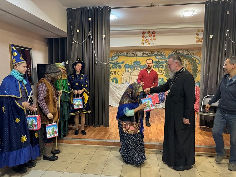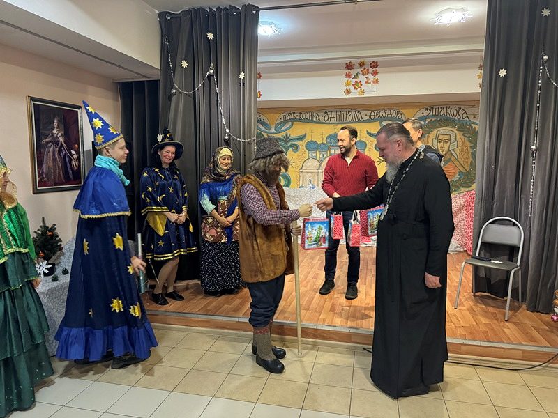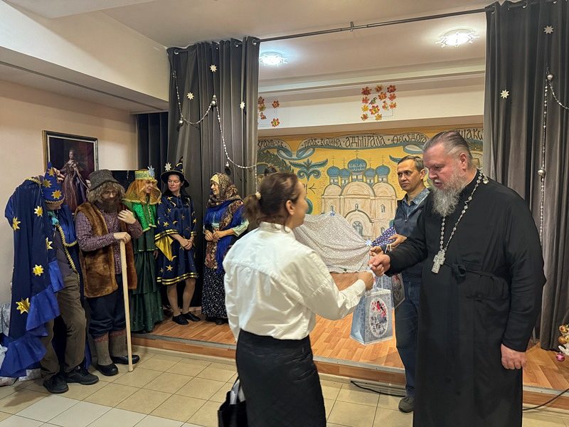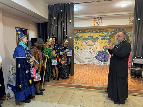 После этого все присутствующие сделали совместную фотографию, а настоятель храма игумен Дамиан (Залетов) и директор Воскресной школы чтец Георгий Андреевич Овчинников вручили ребятам и артистам сладкие подарки. Настоятель тепло поблагодарил ребят и взрослых за замечательный праздник, когда мы сами делимся радостью праздника друг с другом, сохраняя свет Рождества Христова.