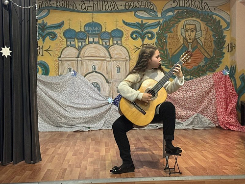 Затем выступила еще одна юная артистка Таня Карпова, которая исполнила на гитаре «Sentimentale» Джулиани и «Take five» Пола Дезмонда в аранжировке Кочкариной.