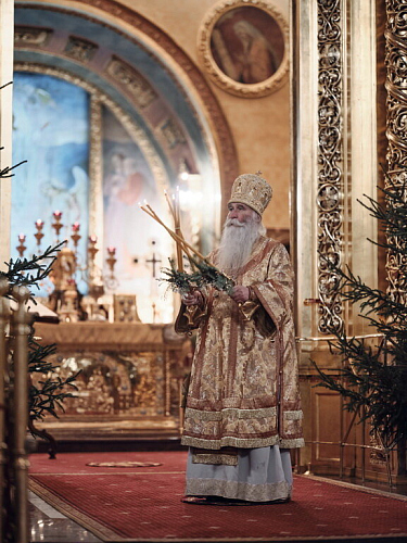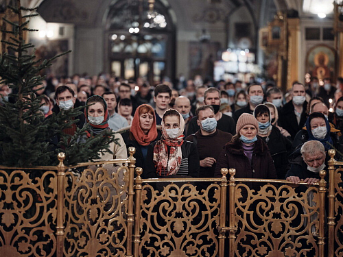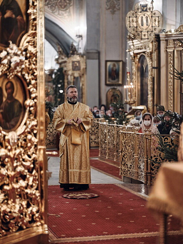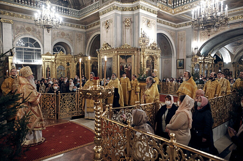 В ночь с 6 на 7 января 2021 года, в праздник Рождества Господа Бога и Спаса нашего Иисуса Христа, епископ Дмитровский Феофилакт совершил Божественную литургию святителя Иоанна Златоуста в Богоявленском кафедральном соборе в Елохове в городе Москве .