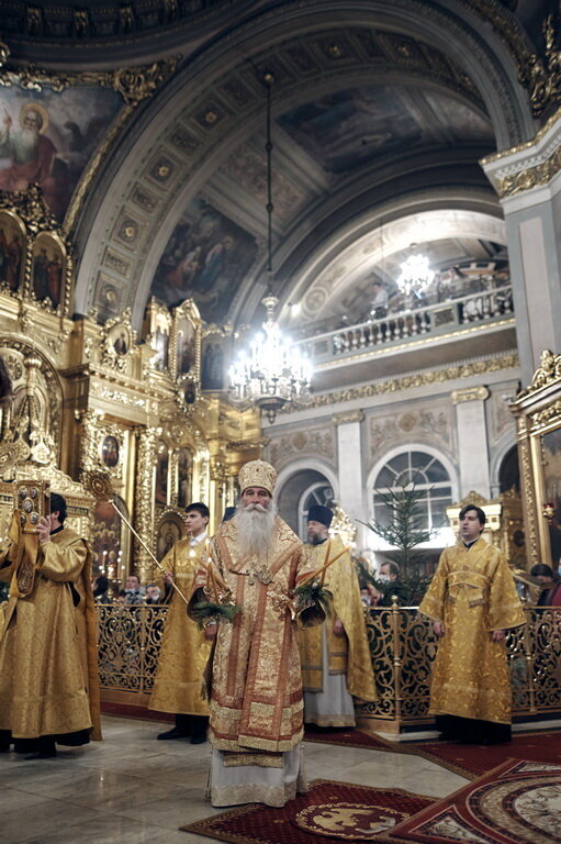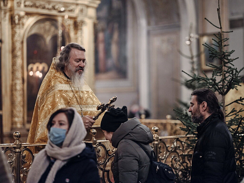 Рождественское послание Святейшего Патриарха Московского и всея Руси Кирилла архипастырям, пастырям, диаконам, монашествующим и всем верным чадам Русской Православной Церкви огласил протоиерей Борис Обрембальский.