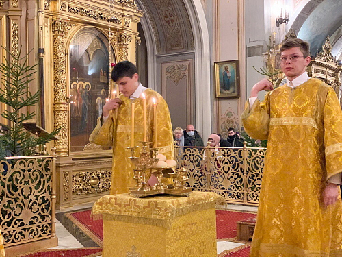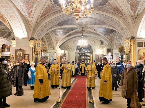 6 января 2021 года, в Праздник Рождества Господа и Спасителя нашего Иисуса Христа, Всенощное бдение в Елоховском соборе возглавил епископ Дмитровский Феофилакт.