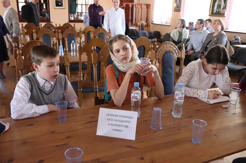 Юго-Западное викариатство представила сборная команда «Ковчег», в которую по результатам IV Сретенской викторины вошли представители четырех Воскресных школ: храма Живоначальной Троицы в Старых Черёмушках, храма священномученика Ермогена, патриарха Московского и Всея Руси Чудотворца, храма благоверного князя Дмитрия Донского, храма священномученика Серафима, митрополита Петроградского. Это лучшие игроки приходских команд, которые были выбраны ребятами в процессе игры в Сретенской викторине в викариатском туре.