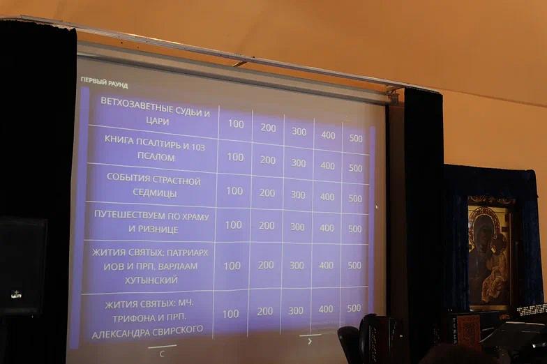 Основные темы интеллектуальной игры в основном не выходили за рамки общего объема и стандарта преподаваемых в Воскресных школах г.Москвы дисциплин, хотя были вопросы и повышенной сложности. Вопросы были разделены на 6 категорий: