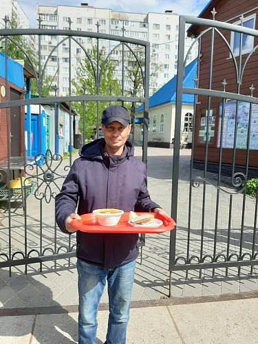 При этом с бездомными волонтеры проводят беседы о Православной вере, пред трапезой совершают молитвы, соблюдая санитарные нормы и социальную дистанцию.