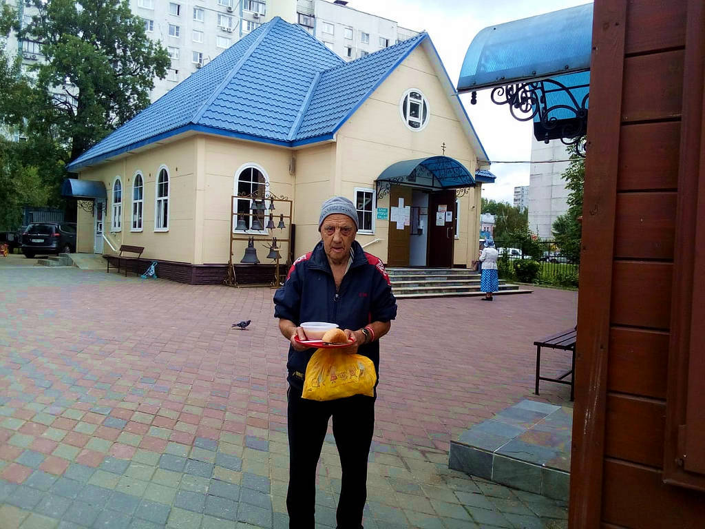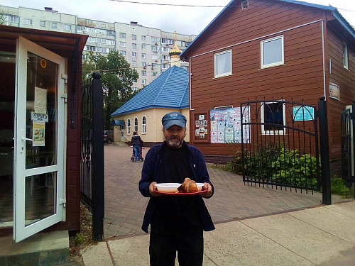 Также по благословению настоятеля, оказывается помощь бездомным людям, нуждающимся в горячей еде. Волонтеры храма ежедневно раздают горячие обеды для бездомных. В день удается накормить 10-18 человек. Еда раздается за территорией храма в одноразовой посуде с соблюдением всех санитарных норм и дезинфекции.