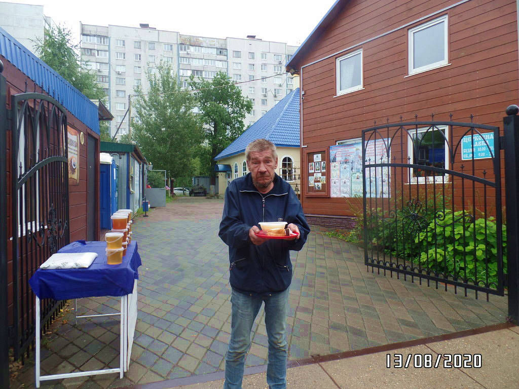 При этом с бездомными волонтеры проводят беседы о Православной вере, пред трапезой совершают молитвы, соблюдая санитарные нормы и социальную дистанцию.